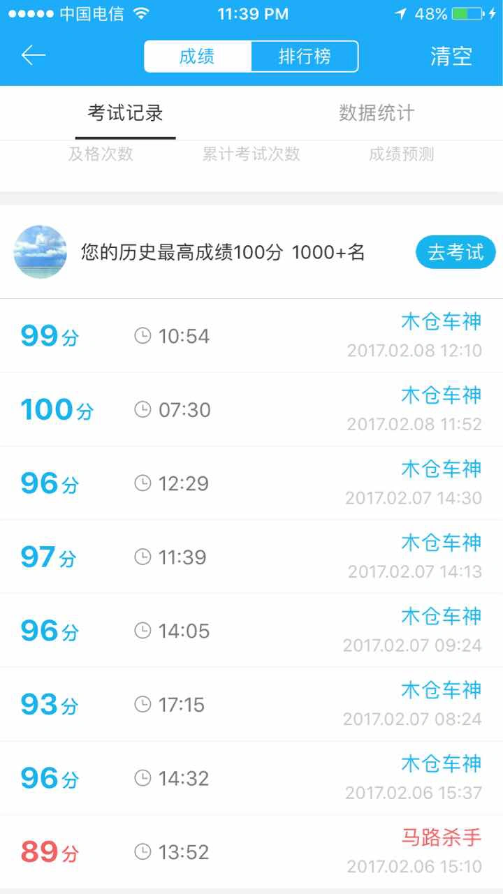 牛人,我科一练习从来没有考超过97分过。刚开始基本都过不了,练习了好久,还好昨天92分顺利通过科一考试