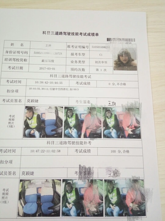 今天要考科三,昨晚没睡好,一直担心怕考不过,在等待的时候,一直跟老公说我紧张,真的到叫我名字的时候,我一点都不紧张,就跟平常一样,上车的动作都没问题,出发了,到右转弯的时候,有个车子停在那里,我过不去,我就停下来,车子走了,我就挂一档,走了两步语音播报就说扣100,问了安全员说是空挡滑行扣100分,当时心都凉了,想着一次机会白白的浪费了,第二次我就更不紧张了,慢慢的开,最后满分,今天看到很多人都没过,其实科三很容易,能去考试技术都是可以的,所以很多人挂掉都是因为紧张,压力过大,你就当平常那样练习,放宽心,没啥大问题的。😁科三过了,科四就容易了,感觉驾驶证在跟我挥手一样